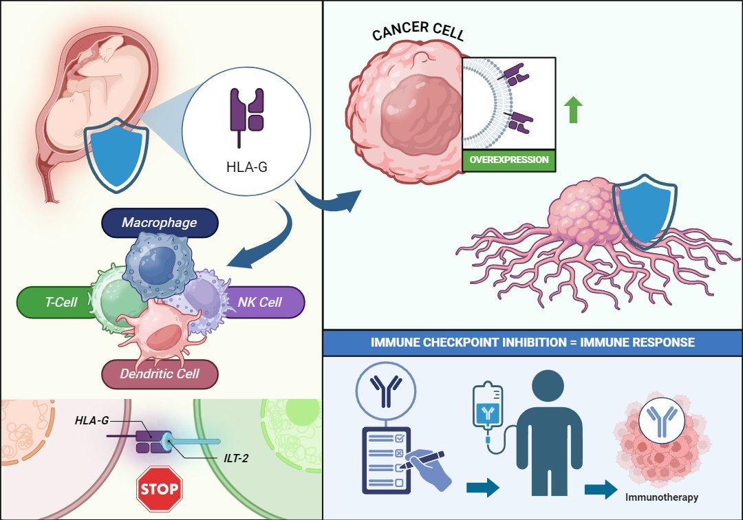 The most well-known immune checkpoints today include PD-1/PD-L1, PD-L2, and CTLA-4/B7 interactions. However, in recent years, a promising candidate has emerged: HLA-G, a protein whose natural function is to maintain immune tolerance during pregnancy, preventing the maternal immune system from attacking the fetus as a “foreign entity.” This same protein can become an ally for tumors, helping them evade destruction by the immune system.