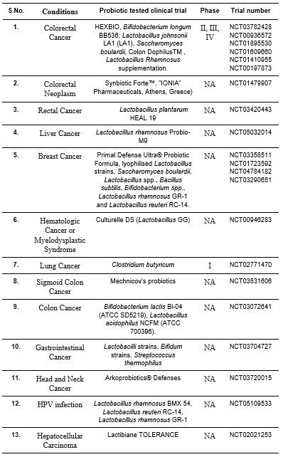 Table 1. The completed clinical trials testing the effect of probiotics on cancer immunotherapy (Modified from Singh et al. 2023).