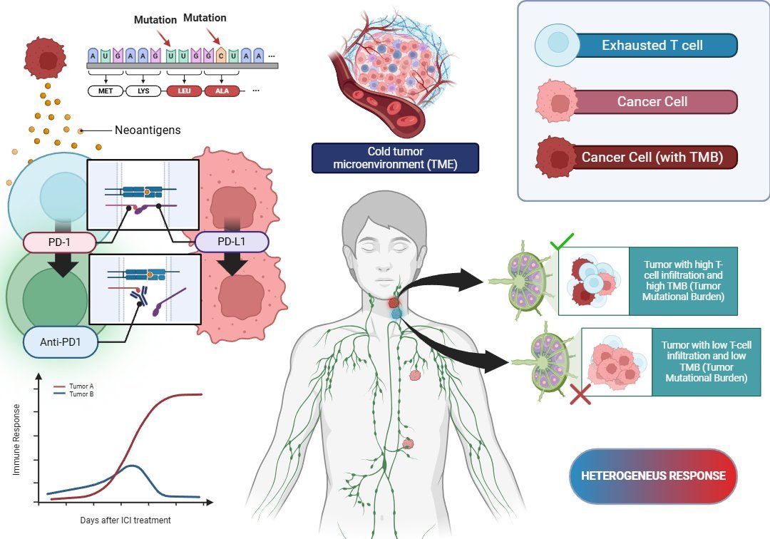 Figure 1. Tumors with high T-cell infiltration and TMB respond, while those with low infiltration remain resistant, leading to a mixed response.